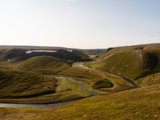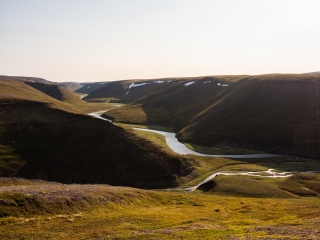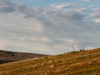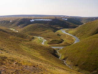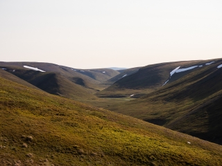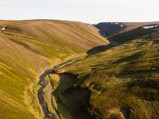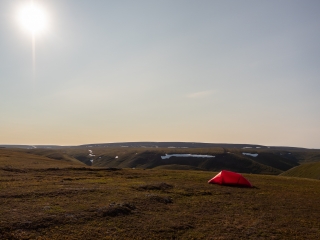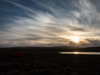 In July 2019 I did a hike in Varangerhalvøya National Park. The weather was still very windy, rainy and foggy, but just when I arrived to the edge of Sandfjorddalen the sun came out behind the clouds. Stunning moment!